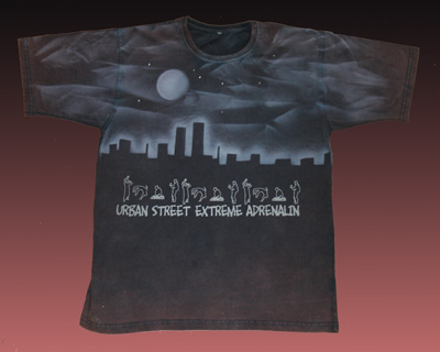 Аэрография – нанесение неповторимого рисунка практически на любую поверхность путём напыления. Аэрография - возможность нанесения изображения в труднодоступные места, так же нанесение на все изделие целиком. А использование водяных красок в аэрографии делает рисунок более приятным на ощупь и дает возможность гладить прямо по рисунку не выворачивая изделия.